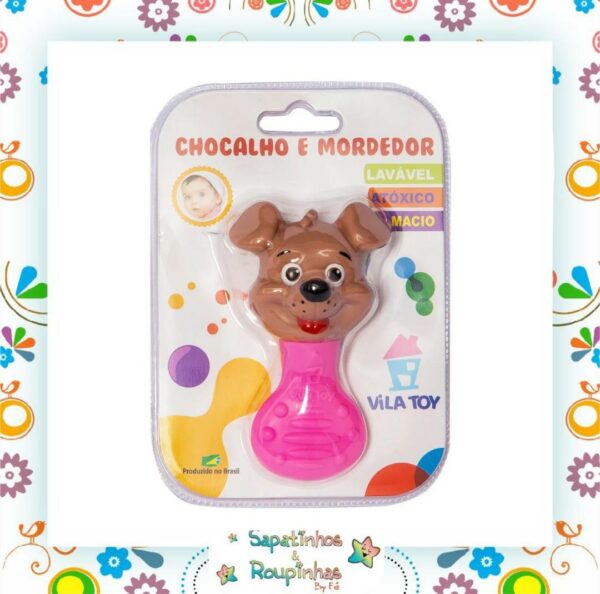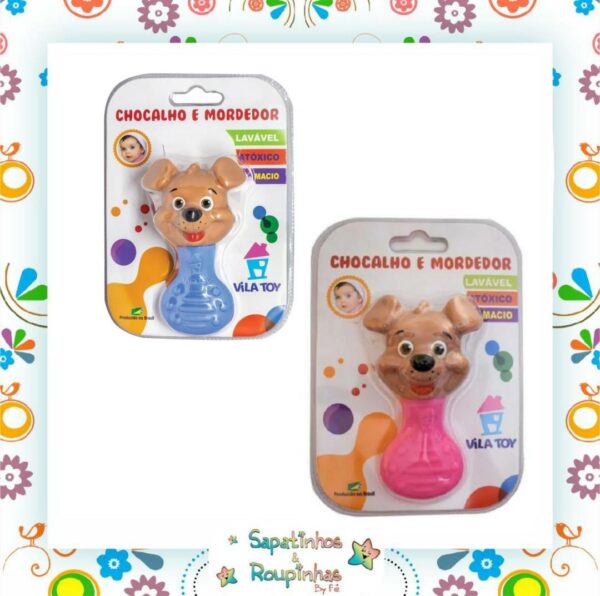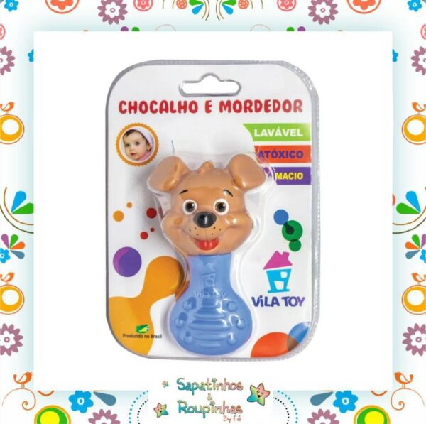 Mordedor com chocalho macio, atóxico, lavável e sem ftalato. Chocalho possui barulho suave que estimula seu bebê. Indicado para bebês +2M.